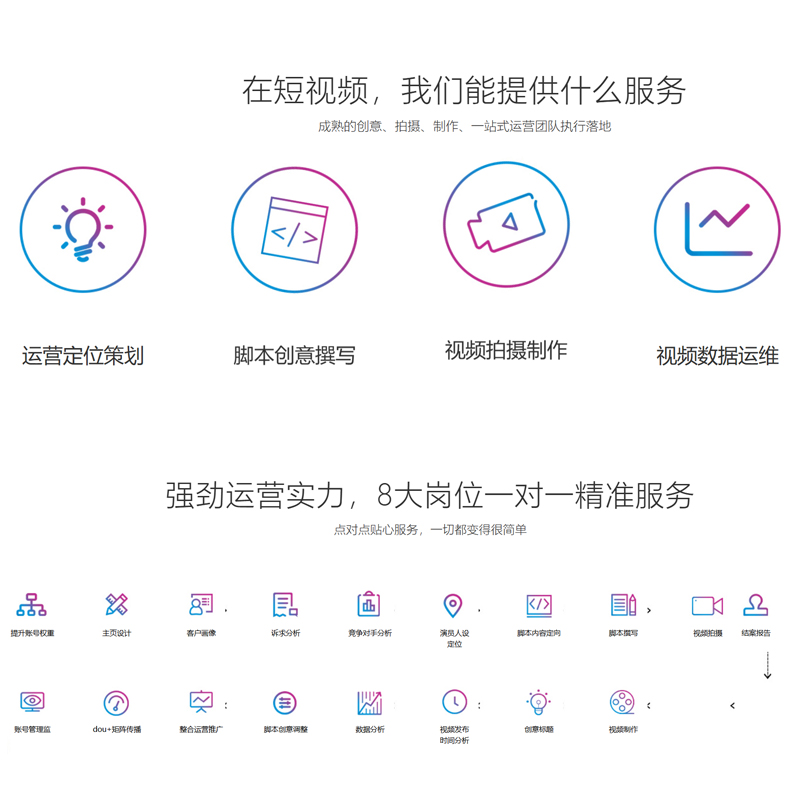 在短视频,我们能提供什么服务? 成熟的创意、拍摄、制作、一站式运营团队执行落地