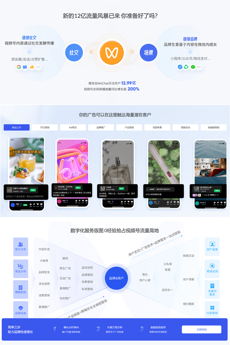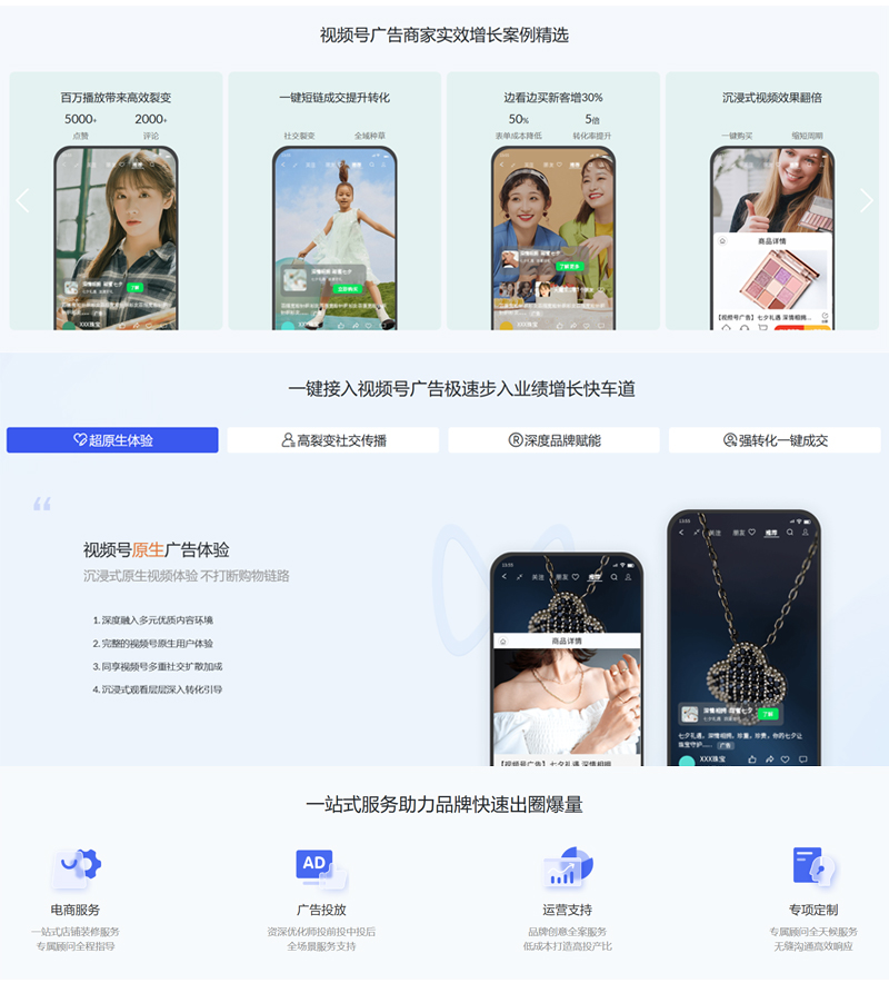 视频号原生广告一站式服务,精准广告投放 +电商直播卖货+视频号长效运营汇聚万亿潜客 长效获客短链转化
